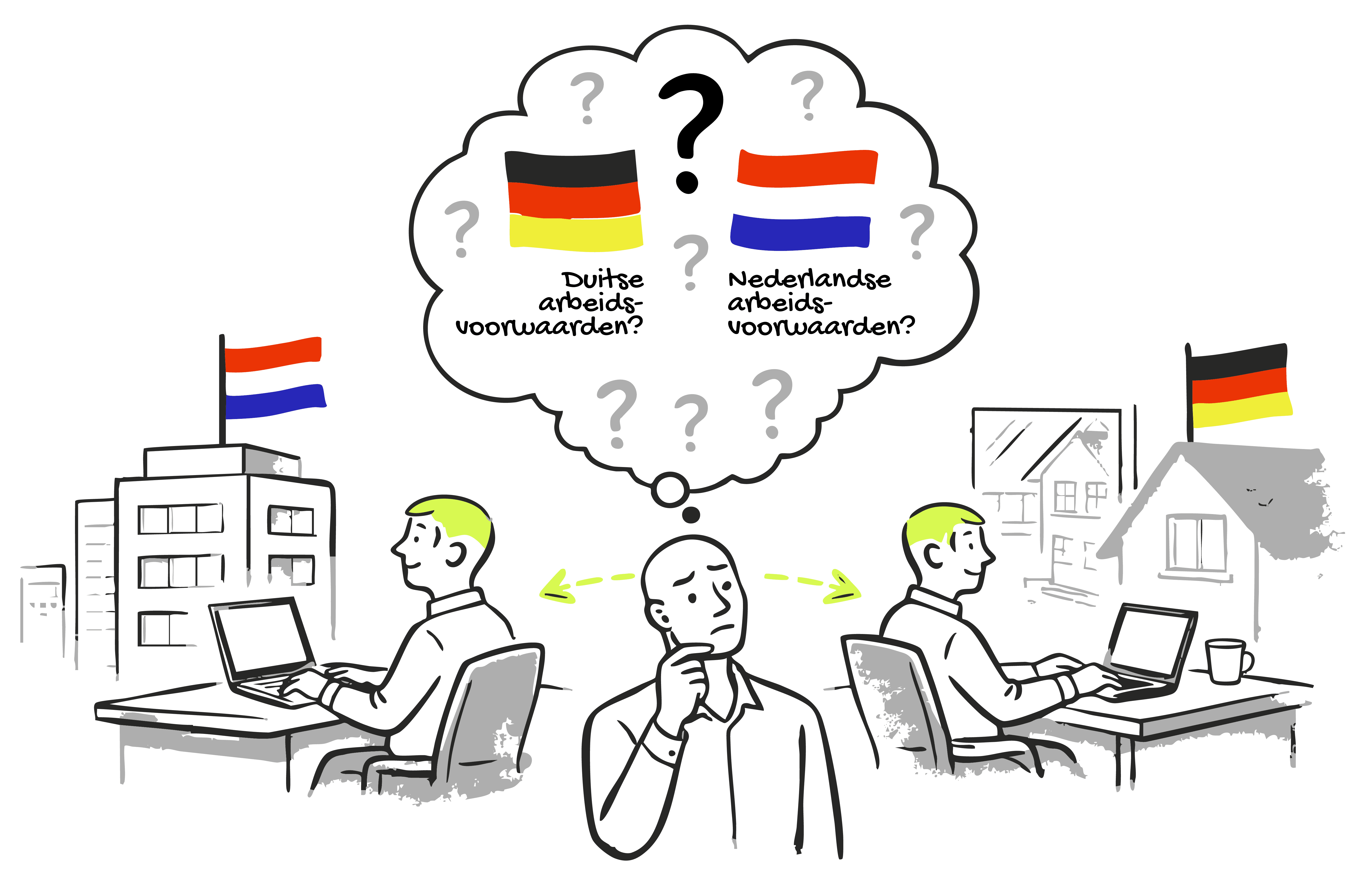 Tijdens een afspraak met een klant van ons, gevestigd in Venlo, vlak bij de Duitse grens, bespraken we een lastig dossier rondom een disfunctionerende werknemer. Nadat we hiervoor samen een plan van aanpak hadden opgesteld, kwam direct een ander vraagstuk ter sprake: ze willen een nieuwe werknemer uit Duitsland aannemen. Om juridisch goed te kunnen adviseren, is voor ons cruciaal te weten hoe de werkweek van deze grensarbeider er feitelijk uit komt te zien? De intentie van de klant bleek hybride: de werknemer gaat deels ophet kantoor in Venlo werken, maar ook deels vanuit huis in Duitsland.